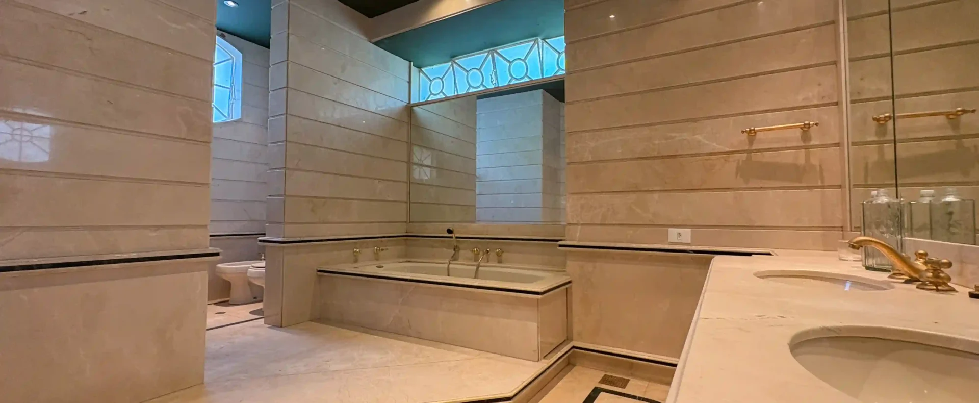 El interior destila elegancia: un gran hall de entrada, amplios salones y comedores, y espacios de biblioteca y despacho crean una atmósfera de sofisticación y calma. El comedor destaca por su opulento diseño, perfecto para recibir invitados.